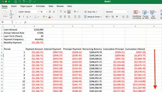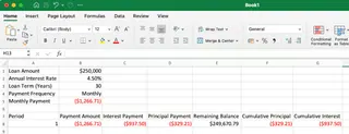 - Loan amount: $250,000 (cell B1)